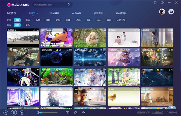 进入壁纸工坊页面,可查看最新的动态壁纸图,也可以选择类别查看动态壁纸分类,双击或单击可放大壁纸阅览。