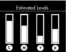 控制面板将显示估计的墨水量。 墨盒列中显示的颜色数量表示该颜色对应的墨盒剩余的墨水量