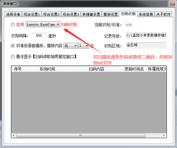 8、可识别快递条形码并存入txt文件,可快速定位打包出错所在视频段。