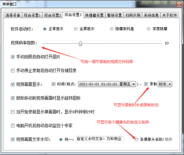16、可统一调节视频码率和添加水印:
