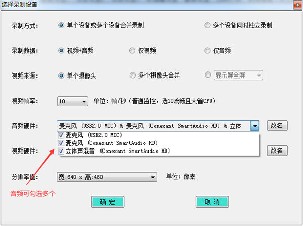 1、支持单个摄像头+多个音频设备录制、多个摄像头画面合并+多个音频设备录制、多个摄像头与多个音频设备各自同时单独录制等。