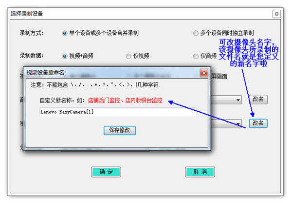8、可修改摄像头名字: