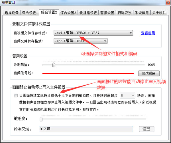 15、可选择视频文件格式和画面静止时不写入视频文件(大大降低文件大小):