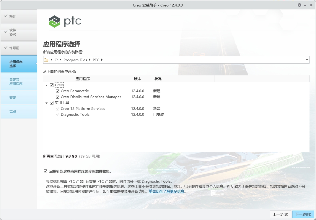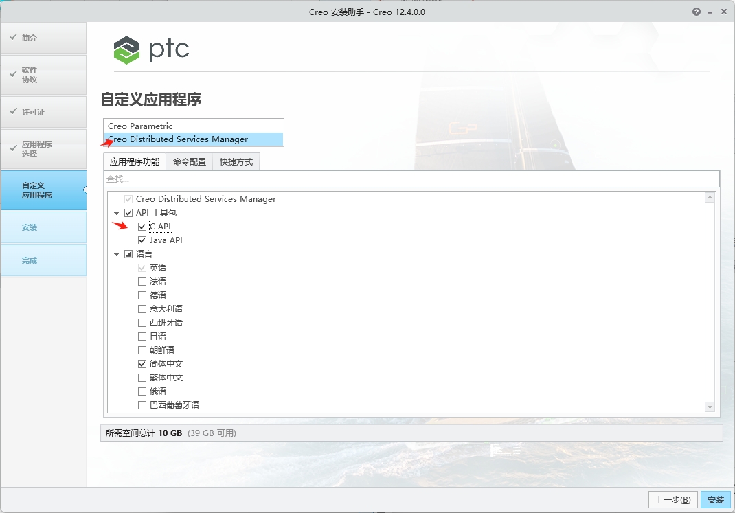 10、Creo Distributed Services Manager产品选择,将APP工具包选择,然后点击安装。