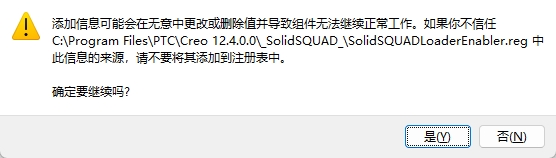 16、双击运行SolidSQUADLoaderEnabler.reg,弹出对话框,并点击是。