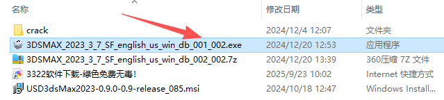 1、下载解压后得到3DS MAX 2023版本安装包和注册机,运行exe程序;