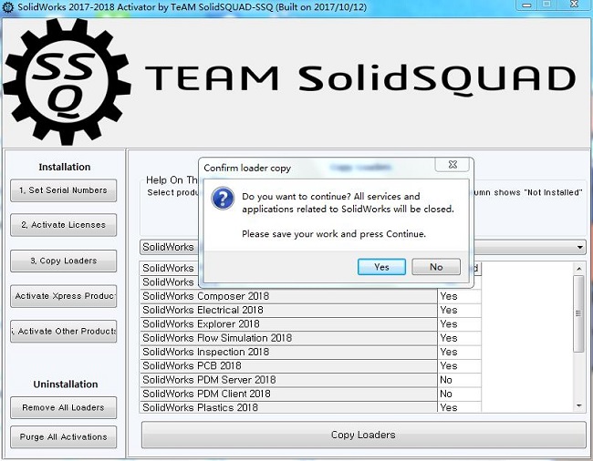 12、再次点击“Copy Loaders”,弹出提示框点击Yes