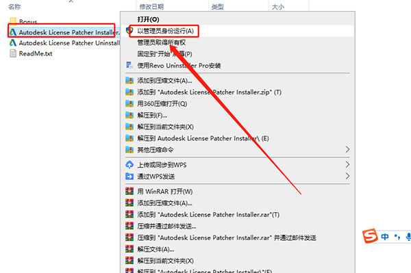 11、在方法1里面选择Autodesk License Patcher Installer.exe,然后鼠标右键以管理员身份运行。