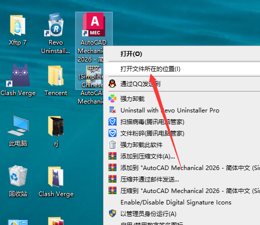 8、在电脑桌面找到AutoCAD Mechanical 2026,鼠标右键打开文件所在的位置进入。