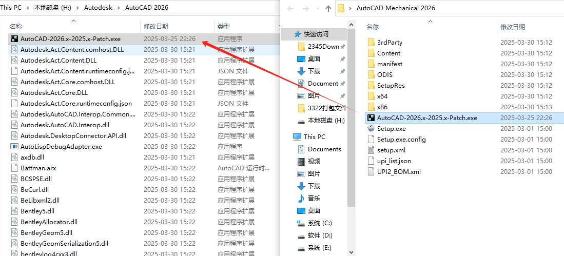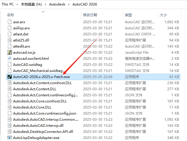 9、将【AutoCAD-2026.x-2025.x-Patch.exe】注册机文件复制到软件安装目录中。