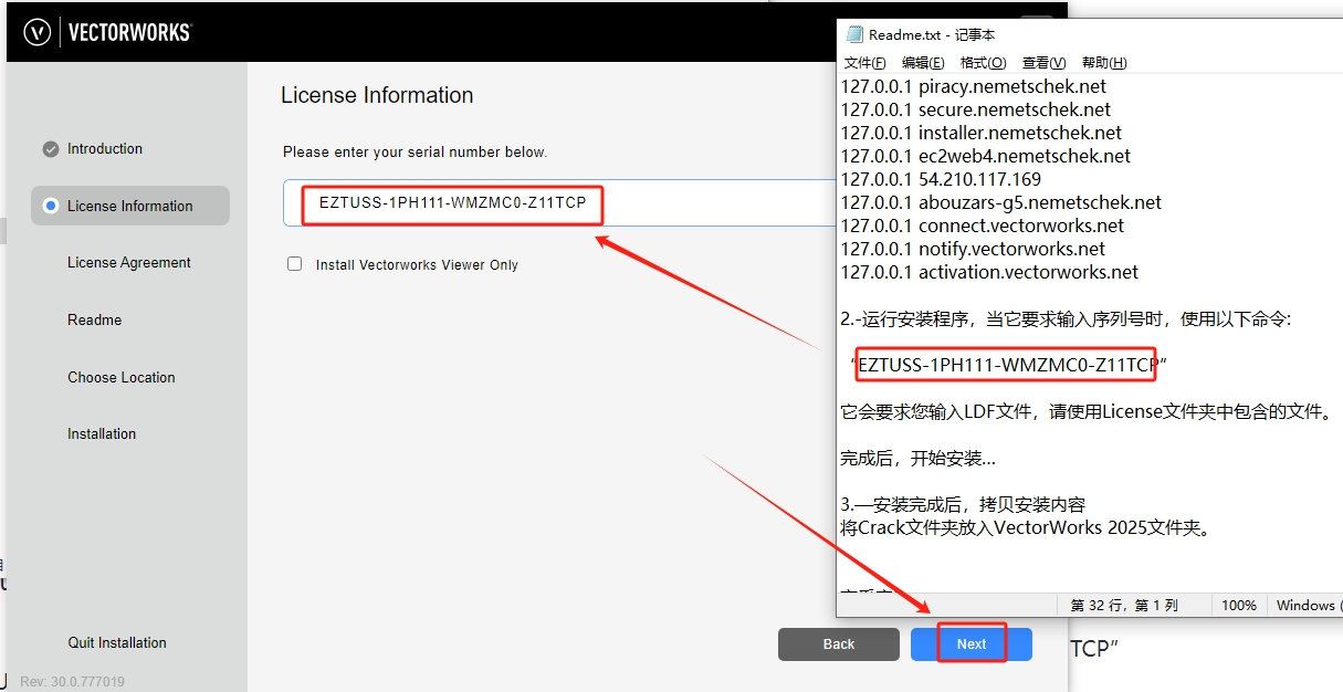 6、输入序列号:EZTUSS-1PH111-WMZMC0-Z11TCP 然后Next。