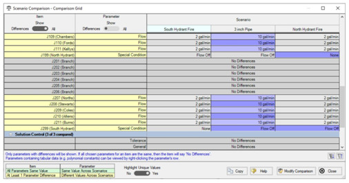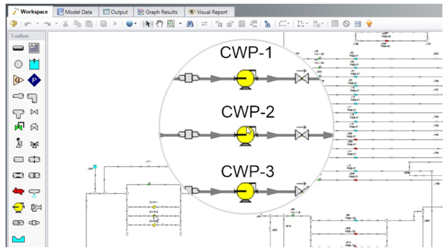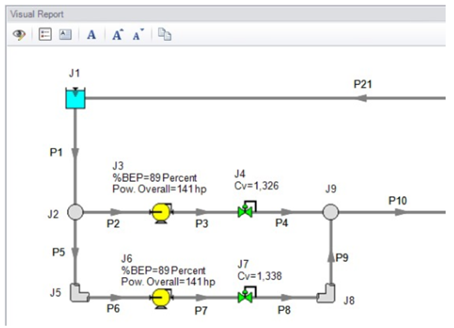 4、模拟系统操作(快速改变系统参数如:泵几运几备,阀门开度等装置调节),针对变工况进行系统模拟分析(可以将不同工况分别建立Senario场景并使其进行同时分析计算,最后比较结果,避免了重复建模)