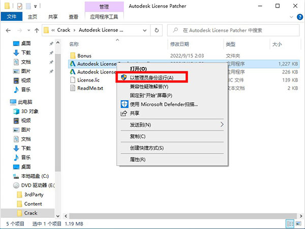 7、回到下载的文件,找到Crack文件夹下的补丁文件,以管理员身份运行