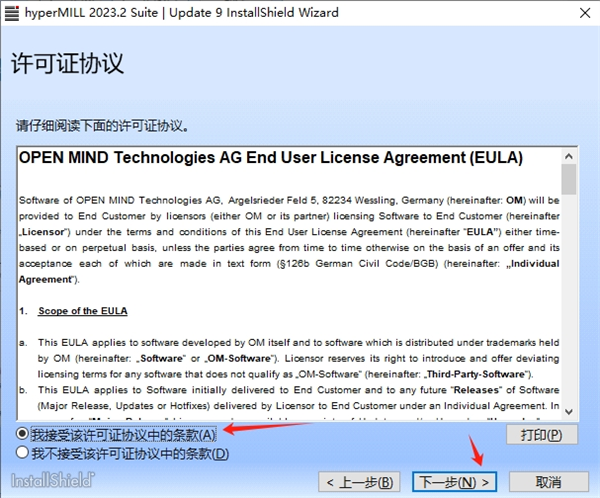 安装前一定要卸载干净原先安装的HyperMILL版本,清除残留文件,关闭杀毒软件开始安装;