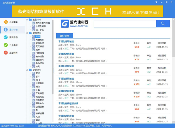 蓝光五金手册电脑版是一款建筑行业非常实用的五金手册软件。它采用国内首创技术,实时、动态更新,无需升级软件就可以轻松获取最新五金资料,内置常用土建、装修、安装、市政、园林等建设行业常用建材价,每月同步更新。并且提供材料密度、重量计算公式、换算、管径对照表、管件单价、图形公式、球墨铸铁管件单价、防火阀、风口单价计算公式等常用数据;提供圆钢、方钢、六角钢、八角钢、螺纹钢、圆盘条、等边角钢、不等边角钢、普通工字钢、轻型工字钢、普通槽钢、轻型槽钢、扁钢、薄钢板、中厚钢板、花纹钢板等100多种钢材理论重量。还有镀锌钢管、焊接钢管、钢塑复合管、无缝钢管、不锈钢管、铸铁管、水煤气管、水泥管、球墨铸铁管、材料重量计算公式、常用材料密度、室内外镀锌钢管管件单价、室内外焊接钢管管件单价、铸铁排水管管件单价、塑料管件单价、电力电缆管、原木材积表、原条材积表等五金知识,有需要的可以下载蓝光五金手册电脑版看看。