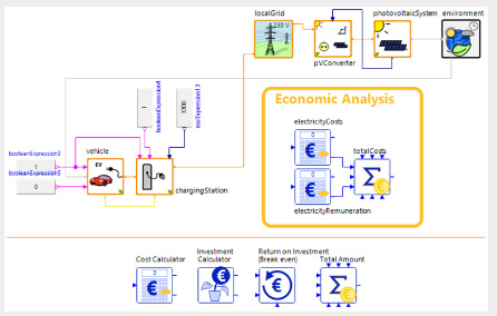 根据模型中可用的(物理)结果量计算和模拟成本和收入。因此,例如,获得()或消耗(-)的电(功率)输出可作为电力生产中的收入计算的基础或电力消耗的成本计算。