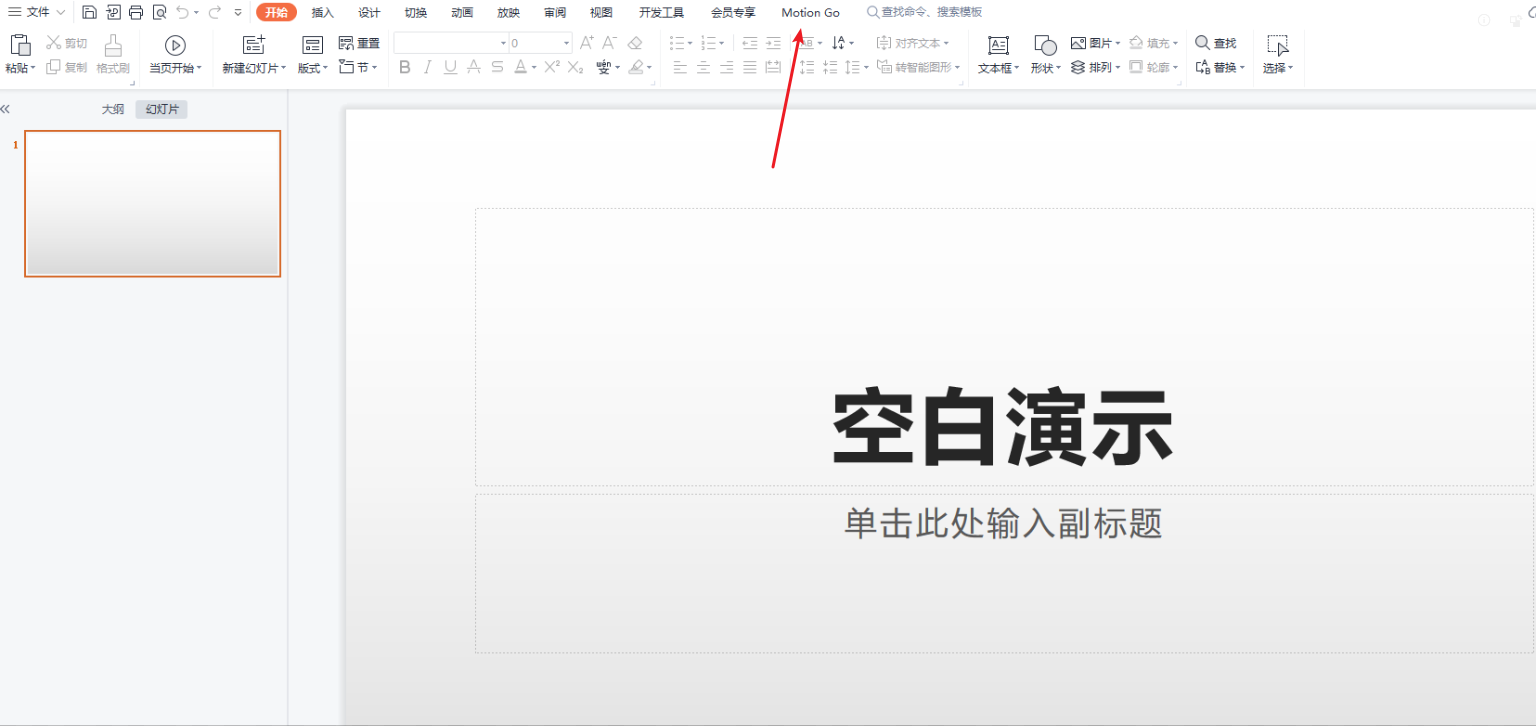 5、安装完成以后是直接集成在Office里的,打开Office-PPT软件,在顶栏即可看见MotionGo