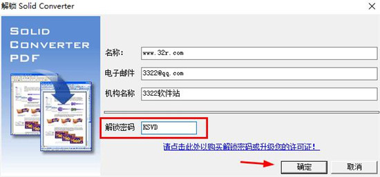 7、然后在solid converter解锁界面,输入用户信息,和解锁密码等,点确定即可