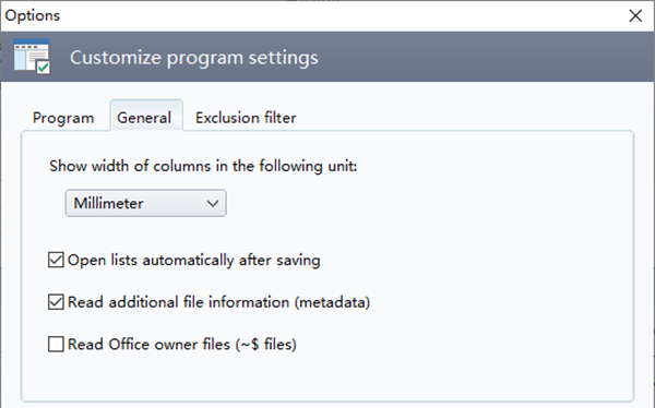 7、以以下单位显示列的宽度:毫米、保存后自动打开列表、读取其他文件信息(元数据)、读取Office所有者文件(~$个文件)。