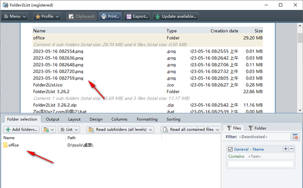 使用Gillmeister Folder2List,用户可以清楚地列出文件夹的内容,生成的文件夹或文件列表可以打印,例如简单的列表或颜色,此外,文件夹内容可以存储为文本文件,CSV文件等,以便将提取的信息例如导入数据库,有几种可用于导出列表的格式