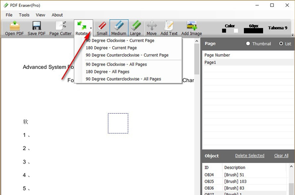 8、点击下拉按钮,选择旋转角度,可将PDF文件内容以不同的角度进行旋转