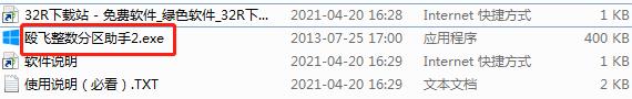 1、在本站下载压缩包,解压文件,双击殴飞整数分区助手2.exe打开软件