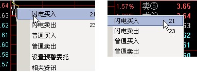 组合窗口上右键点击,在弹出的菜单中选择闪电买入\闪电卖出,在盘口的交易价格上点击右键,在弹出窗口上选择闪电买入,或者闪电卖出: