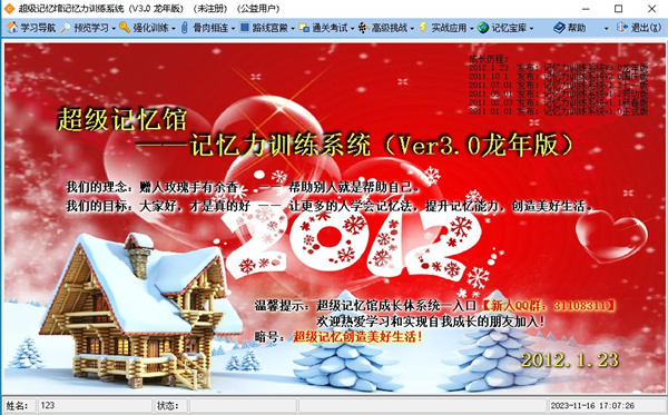 目前,记忆力训练系统V2.0国庆版为大家提供预览学习、强化训练、骨肉相连、路线宫殿、通关考试、高级挑战、实战应用、记忆宝库等训练模块及110数字桩、三十六计、走遍中国路线桩、扑克牌、手机号码实战、26大小写字母桩、圆周率、三字经等训练项目。