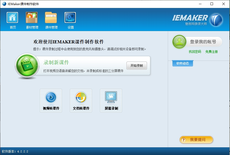 实时录制授课者讲课的视频、音频内容,生成通用的多媒体文件。