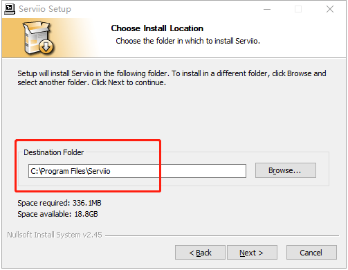 4、默认安装地址为【C:\Program Files\Serviio】,你也可以自行更改。