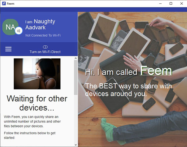 Feem 可以支持 Android、iOS、Windows、Windows Phone、macOS 甚至是 Linux,可以说是真正意义上的覆盖全平台了。 而且软件的设备之间没有从属关系,任何设备都能与其他设备「双向传输文件和文本」。