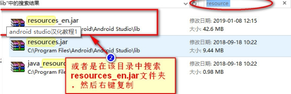2、也可以在该文件夹下搜索resources_en.jar,右键复制,如图: