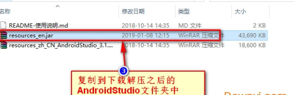 1、在安装好的根目录里面找到resources_en.jar压缩包文件,默认目录为C:\Program Files\Android\Android Studio\lib\resources_en.jar,如图所示: