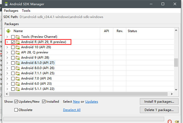 4、API的任意选择一个,考虑向下兼容原则,可以下载最新的API。