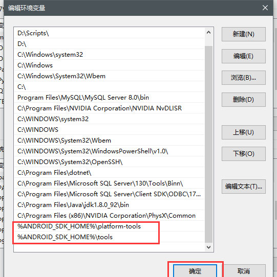 12、把%ANDROID_SDK_HOME%\platform-tools;%ANDROID_SDK_HOME%\tools添加到Path环境变量中。