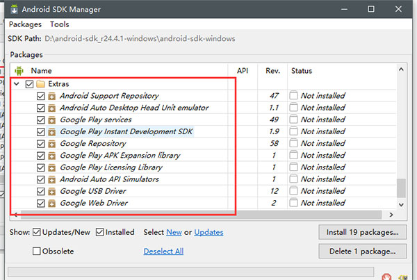 1、先从本站下载android sdk,下载完成后,解压至任意路径(不要有中文)。