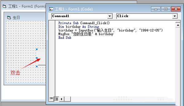 4、双击命令按钮输入以下代码,完成后关闭窗口。