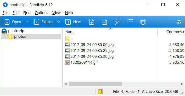2、当档案中的所有文件都捆绑在一个文件夹中时,它们将被提取到当前位置。 在类似下面案例的情况下,在当前位置创建“photos”文件夹,并将所有文件提取到该文件夹内。