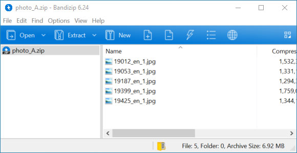 3、在其他情况下,文件将被提取到(档案名)文件夹。 在类似下面案例的情况下,在当前位置创建“photo_A”文件夹,并将所有文件提取到该文件夹。 若已存在任何同名文件夹,则会创建(档案名)(2),(档案名)(3)....