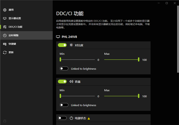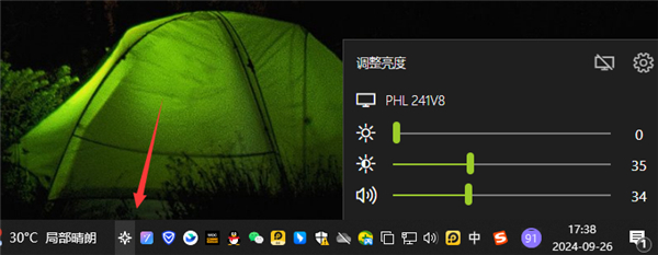 1、下载安装Twinkle Tray,点击下图界面,开启亮度对比和声音设置