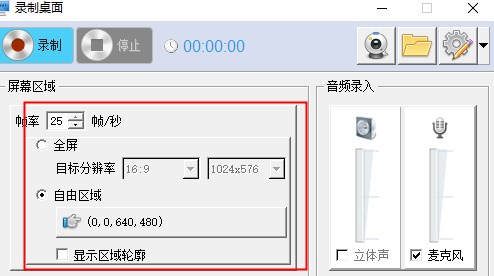 3、录制屏幕: 全屏录制,或者指定区域录制。