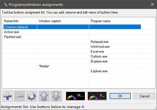 1、运行这个软件后,“colors assignment options”是用来更改任务栏按钮颜色的。点击settings后,就可以添加需要更改颜色的程序,以及颜色。点击“+”号会弹出添加界面,你会在“program name”右侧看到一个像瞄准器一样的按钮,鼠标左键按住它不放,然后在某个程序界面的任何地方放开,那么就会添加这个程序,比如在opera上放开,那么program name后面就会显示opera.exe。然后,在default(system)的下拉菜单中选择“custom colors”,点击“settings”就可以开始更改按钮颜色。颜色效果可以预览,并且使用TaskBow能够让你更改按钮背景色和文字颜色。调色板中也有无数中颜色可供选择。所以如果是opera的话,按钮的背景色可以更改成红色,文字改成白色,这样一眼就可以找到这个浏览器了。当然,颜色是挑选的十分难的,如果选择不到合适的颜色,那么可以使用小编文字图像分类介绍过的各种取色器。