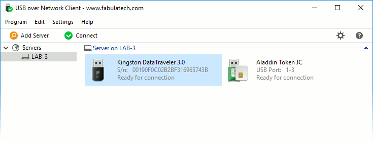 现在,选择USB设备并单击Connect连接按钮。如果所选设备在服务器上可用,它将通过网络连接到您的计算机。如果设备由于某种原因无法连接,将会通知您。