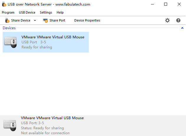 奔跑网络服务器上的USB程序。选择要共享的USB设备,然后单击Share Device共享设备按钮。
