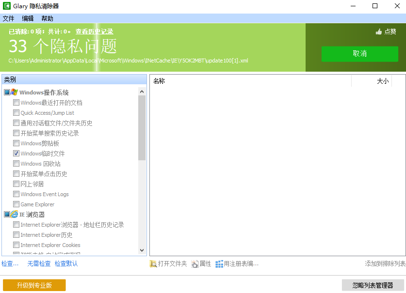 1、进入到软件主界面之后,会自动开始扫描电脑中的隐私问题,我们在界面中可以看到扫描进度,等待扫描完成即可。