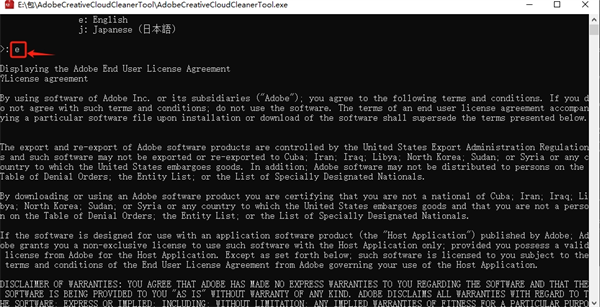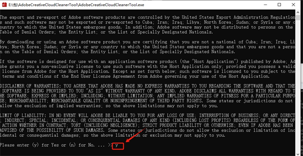 3、查看 Adobe 最终用户许可协议:键入 Y 表示接受,或键入 N 表示拒绝(如果拒绝,则脚本将停止运行),按下 Enter。