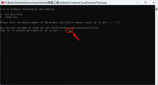5、确认您要删除该产品:键入 Y,然后按下 Enter。