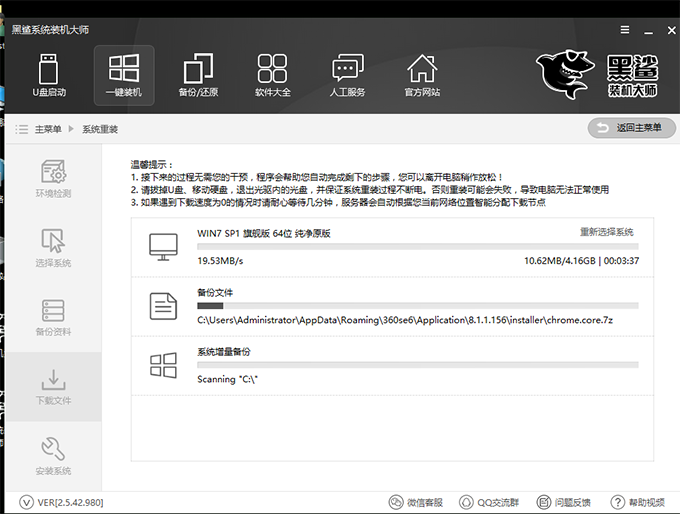 4、系统提示备份用户资料,黑鲨很人性的话的帮你提供了这一步,不必再去手动备份资料。勾选你需要的备份的资料,点击下一步即可。