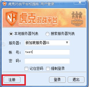 1、在本站下载解压文件后,在解压后的文件夹里找到并双击虎克对战平台.exe启动软件,点击“注册”创建一个自己的帐号。