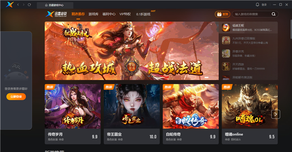 迅雷游戏中心电脑版是迅雷旗下推出的一款游戏平台,它提供了大量的页游、H5游戏、手游电脑版、小游戏资源,玩家无需下载游戏,只需登录账号即可点击畅玩。并且,迅雷游戏还内置海量0.1折扣游戏,外加新手任务、日常任务、游戏任务等福利任务,玩家完成相应的任务可获得积分奖励,而通过对应积分玩家还能免费兑换JBL音乐金砖四代蓝牙音箱、漫步者头戴式蓝牙W820NB、小米筋膜枪2C、罗技鼠标G502等产品!